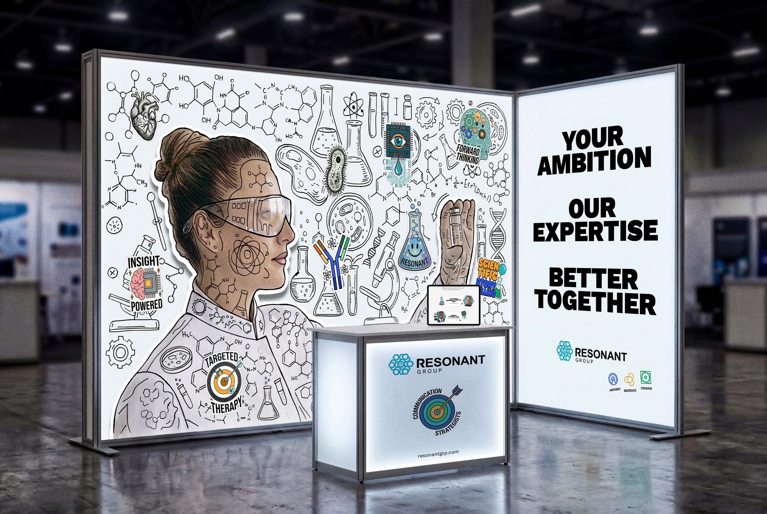 I led the creative evolution of the brand, developing a culture-forward visual system that translated Resonant’s revised positioning into something more confident, ownable and scalable. This included shaping the creative platform and applying it across priority touchpoints, from conference stand design and credentials presentations to web, illustration, motion and core brand assets.